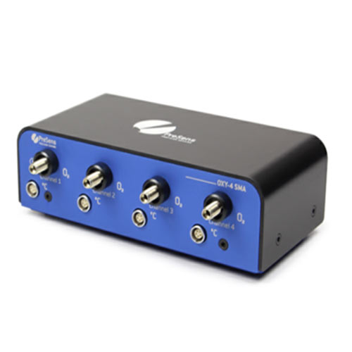 OXY-4SMA多通道光纖測氧儀可以連接非侵入式傳感器、微型探針以及流通管式傳感器,每個通道均有獨立的溫度補償,滿足在溫度變化環境中的精確測量。儀器由USB供電,使用配套軟件操作控制,可以同時控制多臺儀器組成更大的測量系統。