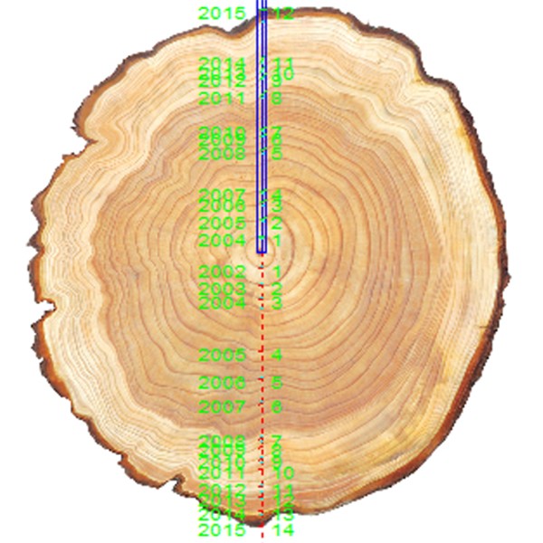 使用時采用高精度掃描設備對樣品成像,軟件自動測定年輪,對于不規則的樣品,可采用人工輔助圖像識別校準以及輔助增/刪的方式保證結果的準確度。可同時顯示年輪寬度、早材/晚材寬度、年輪數量。